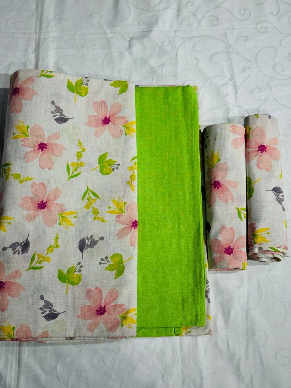 QUEEN SIZE BORDER BEDSHEET WITH TWO PILLOW CASES