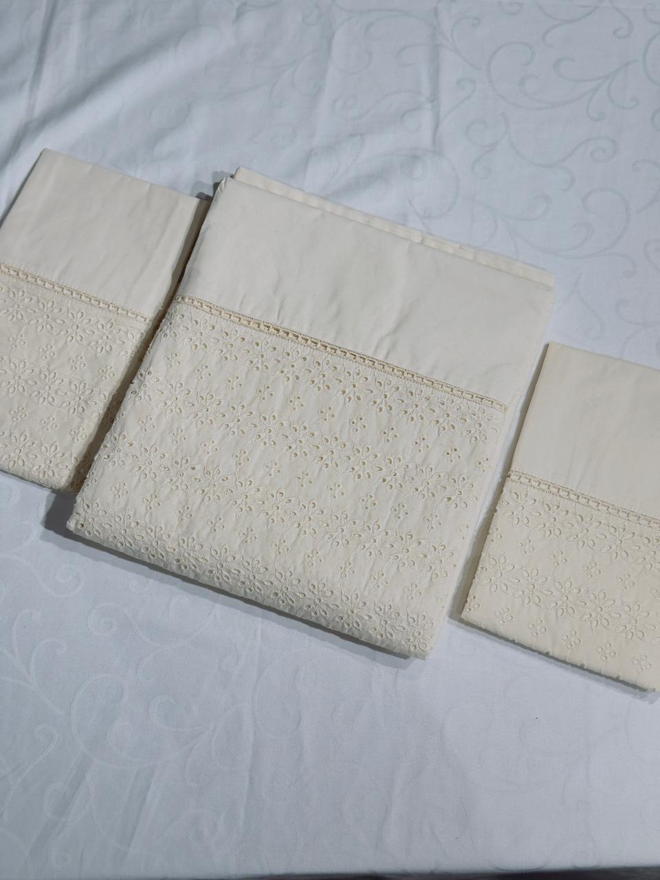 Bring graceful charm to your bedroom with this king size Hakoba soft cotton bedsheet, crafted from smooth, breathable fabric for superior comfort. Featuring delicate Hakoba embroidery, it adds a touch of elegance and timeless beauty to your space. Lightweight, durable, and easy to maintain, this bedsheet is perfect for everyday luxury and refined home décor.